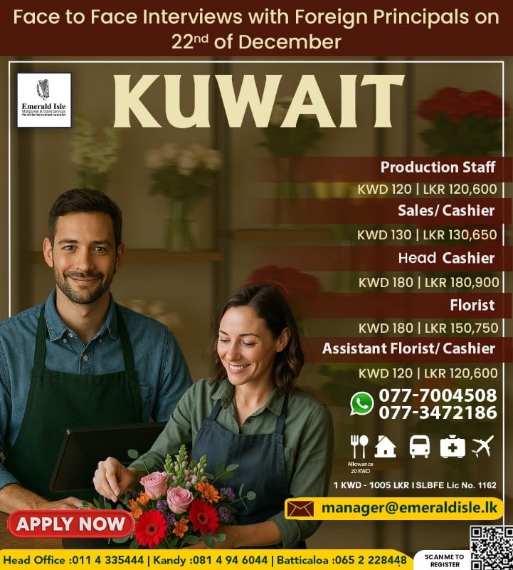 Emerald Isle Manpower and Travel Services is an award winning recruitment agency in Sri Lanka, known for its passionate, skilled recruitment officers who provide professional, honest, and customer-driven services. Committed to the latest recruitment methods and personalized service, we match candidates with jobs they'll love, ensuring a perfect fit for company culture and skills. The gratitude and positive feedback from our candidates are priceless, motivating us to continue delivering exceptional service.