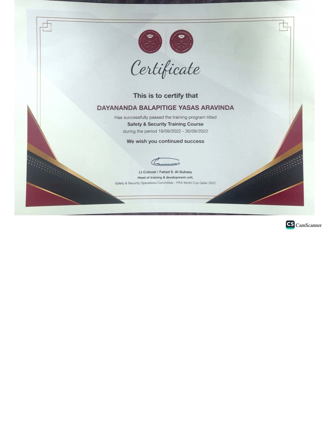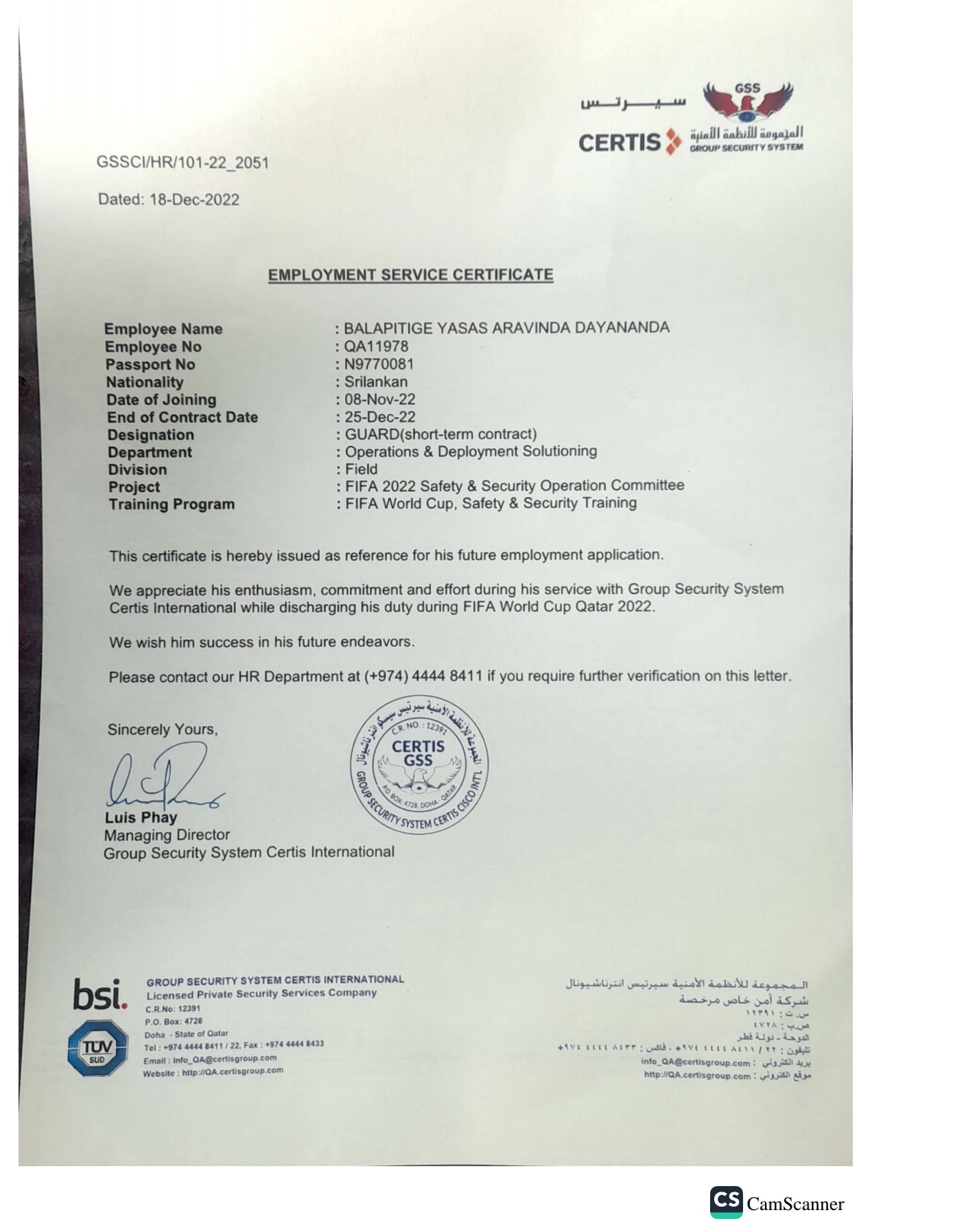 FIFA World Cup 2022 - Qatar Security Officer - Al Sadd SC Stadium Doha Qatar Sort Term Contact