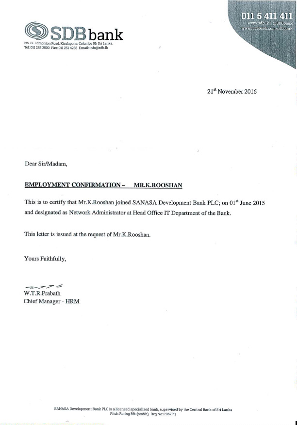 I would like to further explain my motivation for the position of IT Network & Security during a personal meeting. You can reach me either by phone via +94774405970 or by email via roshank93@gmail.com.