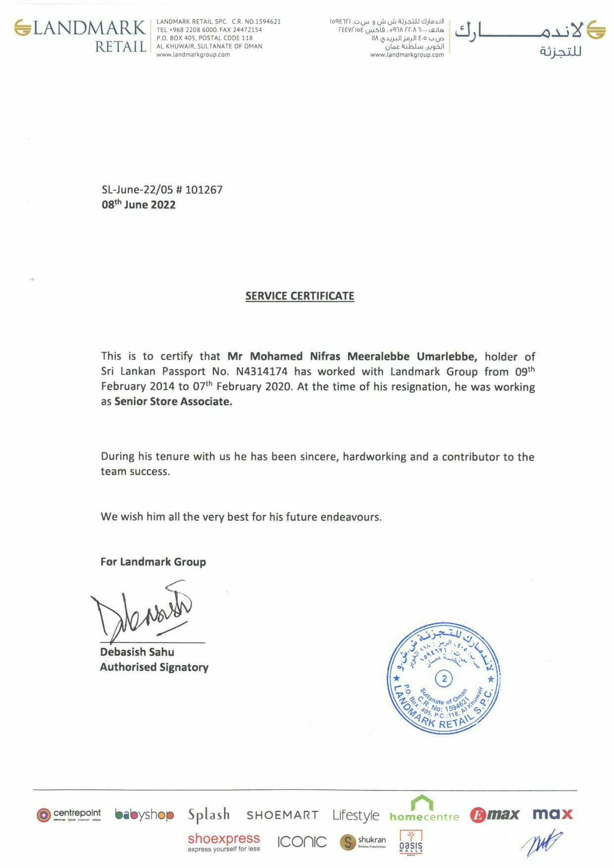 I have worked as a Store keeper for 2 years in Landmark group of company