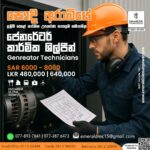 Generator Mechanic Jobs in Saudi Arabia Eng-Mech/Auto/Elec Saudi Arabia November 4, 2025 LKR rs480000 - LKR rs640000 Full Time Urgent