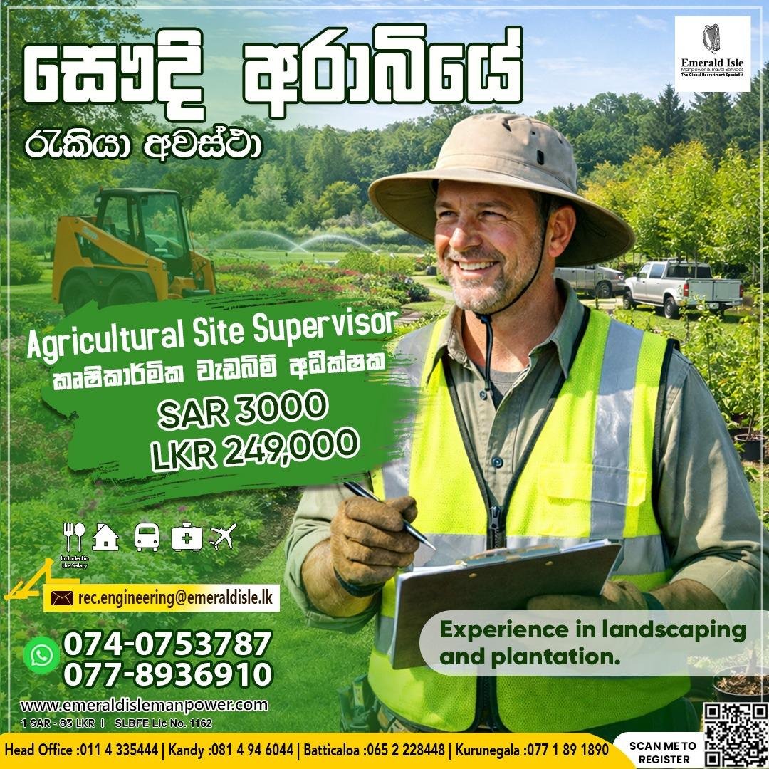 The Agricultural Site Supervisor position offers a competitive compensation package designed for skilled professionals. Specifically, the employer provides a monthly salary of SAR 3,000, which translates to approximately LKR 249,000 based on current exchange rates.