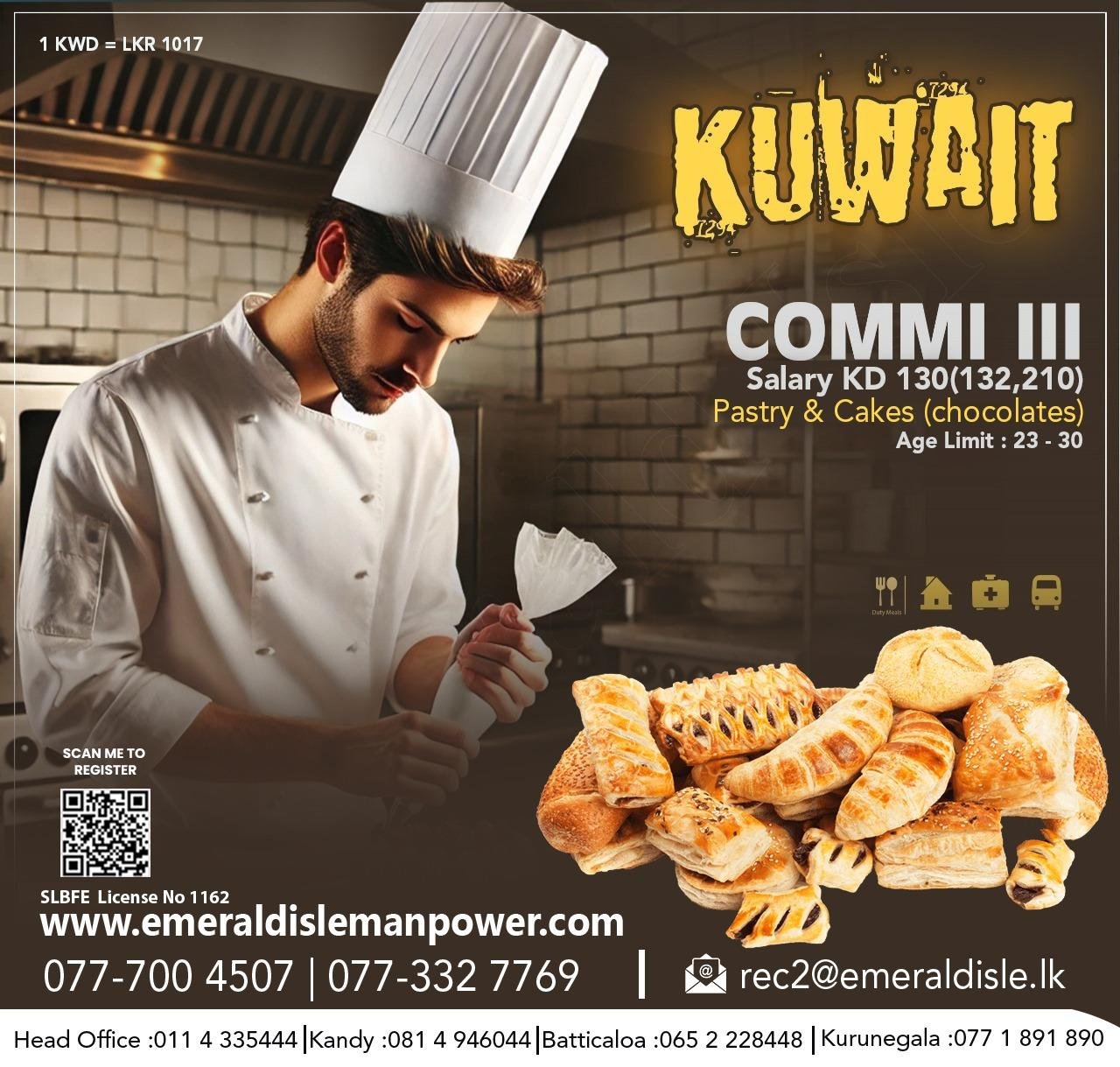 Career Opportunities in Kuwait: Commi III (Pastry and Cakes)