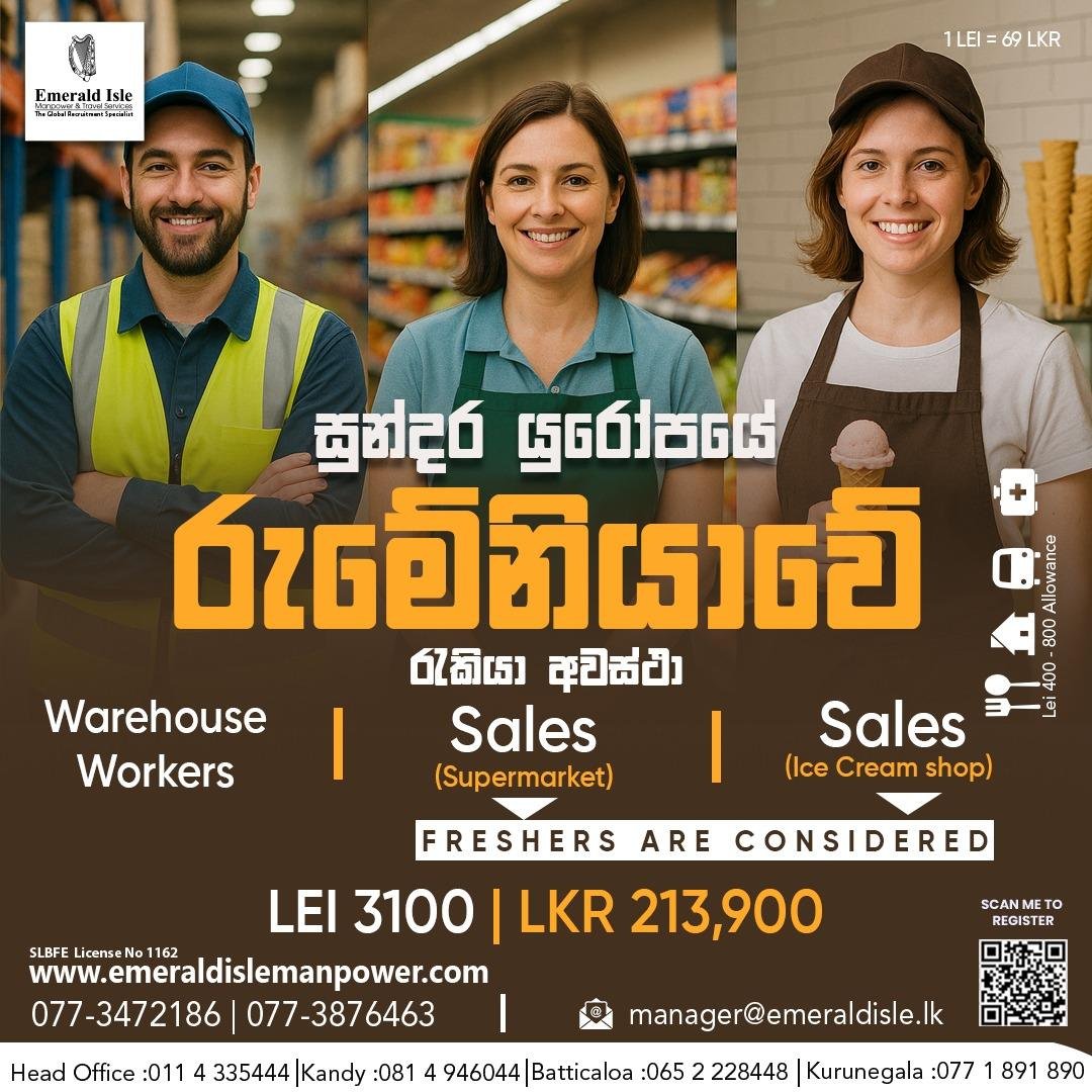 Emerald Isle Manpower, a leading overseas recruitment agency in Sri Lanka, actively seeks motivated individuals to join our client’s team in Romania. This presents an excellent chance for Sri Lankan workers to secure well-compensated employment in Europe. We are currently filling essential positions across the retail and logistics sectors.