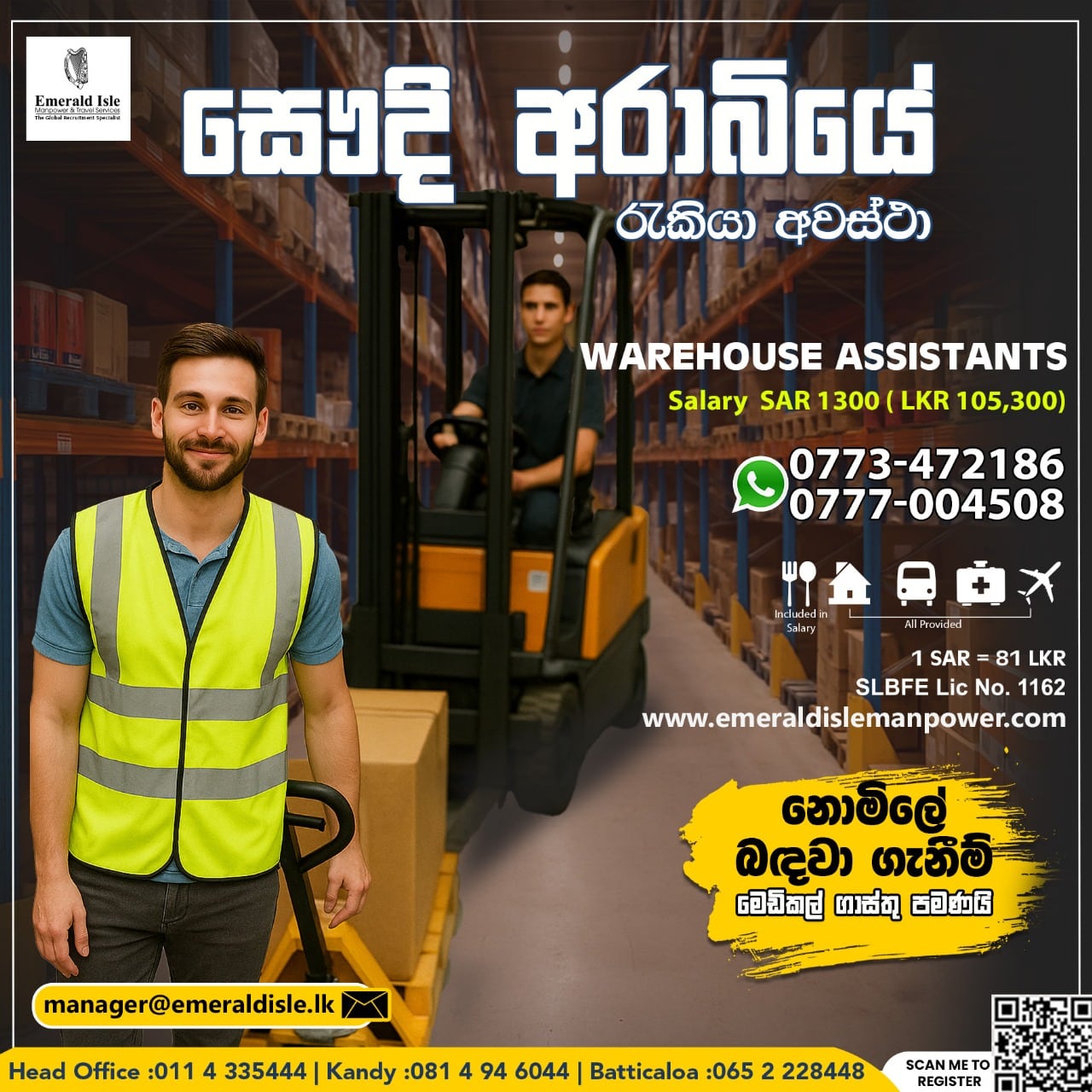 Are you seeking a stable career path in the logistics sector overseas? Emerald Isle Manpower currently offers an exceptional opportunity for hard-working individuals to join a leading company in Saudi Arabia as Warehouse Assistants. This recruitment drive focuses on connecting Sri Lankan talent with reputable international employers. We prioritise transparency and candidate welfare throughout the hiring process.
